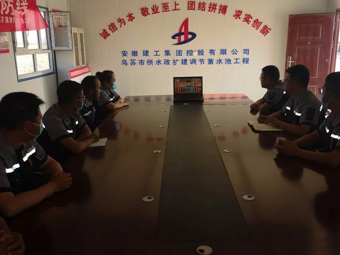 新疆烏蘇分公司烏蘇市供水改擴建調節蓄水池項目部人員集中觀看大會直播