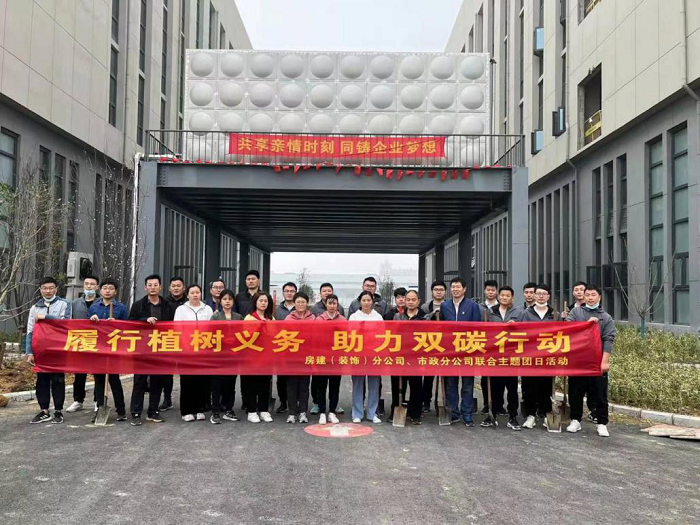 3月14日上午,房建(裝飾)分公司團支部聯(lián)合市政分公司團支部共同開展“履行植樹義務,助力雙碳行動”主題義務植樹活動,分公司黨支部書記攜團員青年等30余人參加活動。