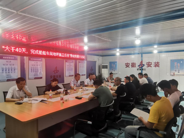 9月2日上午,安徽安裝蚌埠臨港智能制造產(chǎn)業(yè)園二期工程“大干40天,確保完成船舶車間地坪施工任務(wù)”勞動競賽主題大討論在項目部舉行。公司副總經(jīng)理高飛、趙伯平,紀委書記、工會主席李楊,工會副主席王敏,公司勞動競賽委員會相關(guān)職能部門負責(zé)人、蚌埠分公司班子成員、項目部員工共30余人參會,會議由李楊主持。